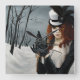 A captivating steampunk-inspired portrait set in a haunting winter landscape. A mysterious Victorian woman with flowing red hair stands among stark, leafless trees and drifting snow, her piercing gaze as cold as the season around her. Dressed in elegant black attire with a feathered top hat, she gently holds a mechanical dragonfly perched on her gloved hand, while a vintage key dangles like a secret waiting to be unlocked. This artwork blends gothic elegance, steampunk fantasy, and winter solitude, making it perfect for lovers of dark beauty, alternative fashion, and imaginative storytelling.