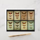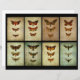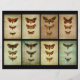 Trio of moths on faded, aged effect backgrounds in a Victorian style.