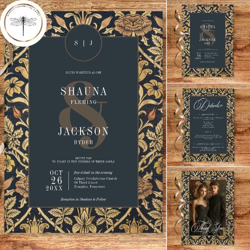 Victorian Tapestry William Morris Floral Wedding Invitation