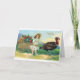 Vintage / Retro / Victorian Thanksgiving card. Thanksgiving Greetings! Turkey pulling vegetable cart!