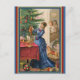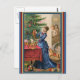 Lovely old Victorian Trade Card featuring a mother decorating the Christmas tree with her children looking on in awe. Toys such as dolls, drums are on the floor waiting to be wrapped.