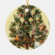 This vintage style ornament has a very detailed hand painted Christmas tree and an little angel holding a Christmas tree in her arms. Antique text and parchment fills out the background. On the reverse side an original background of antiqued lace and texture with the word art "We wish you a Merry Christmas!" and room to personalize with your family name and year or change to your own message very easily. There are matching greeting cards and family letter stationery available. YOU MIGHT ALSO ENJOY: