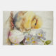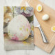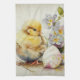 A vintage victorian image of an adorable easter chick surrounded by spring flowers and an egg adorns the waffle-knit custom kitchen towel. Perfect for spring. © Julie McIver