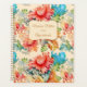 Victorian flourishes with colorful and dynamic floral seamless pattern, featuring elegant red peonies, turquoise yellow, orange and green botanicals. Customizable off white gives this planner a vintage vibe, while gold script calligraphy for your personalization makes it unique and sophisticated.