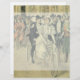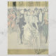Vintage illustration love and romance Victorian wedding image featuring a bride in her wedding gown and veil and the groom in his tuxedo. A romantic design with the husband and wife newlyweds riding an antique tandem bike after their wedding ceremony surrounded by guests and members of the wedding party.