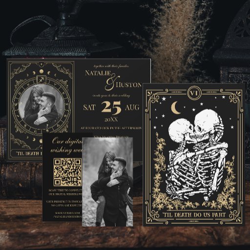 Introducing the "Victorian Wishing Well QR Code Wedding Registry Enclosure Card" – a sophisticated and elegant addition to your wedding stationery. This enclosure card features a black and gold dark fairytale wedding theme with a Victorian and gothic touch. The design includes a romantic and gothic script, complemented by an elegant and sophisticated style.