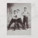 This postcard features a vintage photograph of three handsome, muscled, shirtless Victorian wrestlers.