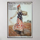 A beautiful girl dressed in a stars and stripes dress from the American flag sows seeds in a garden. It is about a victory garden. They were made to help get along during the war. It says "Every garden a munition plant."