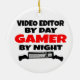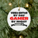 This text design features the trendy phrase "Video Editor by Day Gamer by Night" and is perfect for any video editor who loves playing computer games or video games.