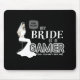 Proud of your video gamer, pixel-kickin' bride? Show it! This dark design shows a beautiful bride with a headset, and a "High Score" monitor. Wording reads "My bride is a gamer (no, you can't have her)". She will be dazzled with this personal declaration of love that only a fellow gamer can give!