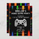Video Game Party Controller Neon Gaming Birthday Invitation. Gaming controller on a vivid colorful neon lights on a black background.