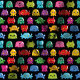 Video Game Monsters Geek Nerd Gamer Pattern Fabric. Cute little rainbow alien geeky nerdy monsters. Perfect for any family who loves to geek and nerd out to play console or computer games.