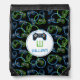 Video Game Neon Blue & Green Pattern Monogram Drawstring Bag