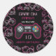 Video Game Neon Pink Girls Birthday Party Classic Round Sticker