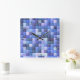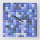 Video Game Pixels Blue Square Pattern Square Wall Clock