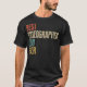 My 11 yo wore adult XL (5’7” 165#). The 8yo is small framed. She wore adult small and tied it in the back. Grandma wore adult large with long sleeve shirt underneath. Tall girl adult medium. Dark haired male adult large. Good quality dark Heather gray, Gildan brand shirt. -it was next up from basic choice and cost about $20 per shirt. Not too thick or thin. Washed and dried well, no major shrinkage. Not see-through. Can wear a bra under it fine. Screen print is just as shown and well done, front and back.