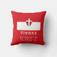 Stylish throw pillow features Vienna Austria flag with city latitude and longitude map coordinates in modern urban font.