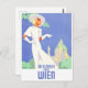 Vienna postcard. Lady in white enjoy in view on the St. Stephen's Cathedral.