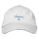 Vieques Puerto Rico hat or baseball cap with embroidered name of the town of Vieques and the initials PR for Puerto Rico. You can customize to other colors, styles and fonts or use as a template and just update the town name with your own text, as well as the PR initials.