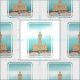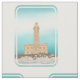 An illustration of Vieste lighthouse in Italy. This lighthouse is drawn standing on its Rocky Island. The theme of the lighthouse is lighting up the dawn or dusk sky. It is also known as Isola Santa Eufemia. It is located between the rocks of Santa Croce and San Francesco, just opposite the town of Vieste, Apulia,