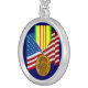Vietnam Service Medal Necklace. This sterling silver necklace is decorated with the Vietnam Service Medal superimposed on the US Flag. "The Vietnam Service Medal is presented to any service member who served on temporary duty for more than 30 consecutive days, or 60 non-consecutive days, attached to or regularly serving for one, or more, days with an organization participating in or directly supporting ground (military) operations or attached to or regularly serving for one, or more, days aboard a naval vessel directly supporting military operations in the Republic of Vietnam, Thailand, Cambodia, Laos within the defined combat zone (DoD 1348 C6.6.1.1.5. revised September 1996) between the dates of 15 November 1961 to 28 March 1973, and from 29 April 1975 to 30 April 1975" - Wikipedia