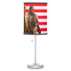 Table lamp with image of statue of American Vietnam Veterans against an American Flag.