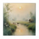 Vietnamese Morning Mist Village Watercolor Art Ceramic Tile