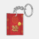 Golden Asian Paper-cut of a Dragon with a red traditional pattern as background. Design on square acrylic keychain with golden wishes in Vietnamese and with monogram to personalize in back. You can easily change monogram (font, color, size and position) by clicking the customize button. Matching greeting card, postcard, sticker and mug.