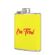 Well made flask, a little better than I had expected. Flask came in clear plastic box which gave it a nice presentation when I took it out of the zazzle packaging. Image is not printed on flask but on sticker. Don't know how this will hold up I haven't used it yet. This would make a Great gift! I plan to purchase more for friends! Cheers. I thought a little brighter than computer. Very crisp, writing wasn't