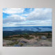 You can see the pink granite which the mountain is made of and off in the distance to port town of Bar Harbor, ME.