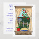 This design features an outside view from a kitchen window for summer. Flowers blooming, fruit on trees pie on window.