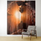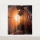 A cool tapestry featuring an artist's impression of the view from the surface of the exoplanet TRAPPIST-1f, located in the constellation Aquarius. In it, the planets in the sky correspond to TRAPPIST1e (top left crescent), d (middle crescent) and c (bright dot to the lower right of the crescents). TRAPPIST-1e would appear about the same size as the moon and TRAPPIST1-c is on the far side of the star. The star itself, an ultra-cool dwarf, would appear about three times larger than our own sun does in Earth's skies.