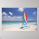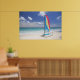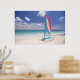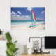 View Of Beach With Sailboat Poster