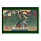 Utagawa Hiroshige (歌川広重) (aka Andō) (1797-1858) was a Japanese ukiyo-e artist, one of the last great artists in that tradition. He was a member of the Utagawa school which comprised dozens of artists, and stood at the forefront of 19th century woodblock prints. Hiroshige is especially noted for using unusual vantage points, seasonal allusions, and striking colors. He adapted Western principles of perspective and receding space to his own works in order to achieve a sense of realistic depth.