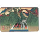Utagawa Hiroshige (歌川広重) (aka Andō) (1797-1858) was a Japanese ukiyo-e artist, one of the last great artists in that tradition. He was a member of the Utagawa school which comprised dozens of artists, and stood at the forefront of 19th century woodblock prints. Hiroshige is especially noted for using unusual vantage points, seasonal allusions, and striking colors. He adapted Western principles of perspective and receding space to his own works in order to achieve a sense of realistic depth.
