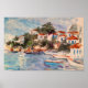 From an original painting in water color by Yvonne Ayoub, ‘View of Skiathos Old Town from The harbor’