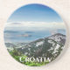 Painting of Croatian mountain landscape. View of sea and islands from Northern Velebit mountains in Croatia. Rocky mountains picturesque nature.