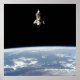 The Earth-orbiting space shuttle Challenger beyond the Earth's horizon was captured by a 70mm camera onboard the unmanned, free-flying Shuttle Pallet Satellite (SPAS-01) during the busy flight day 5 of the STS-7 mission. Visible in the cargo bay are the protective cradles for the now-vacated Telesat Anik C-2 and Palapa B communications satellites, the pallet for the NASA Office of Space and Terrestrial Applications (OSTA-02), the Remote Manipulator System (RMS) and the KU-Band antenna. The STS-7 crew with the RMS later retrieved the SPAS and returned it to a stowed position in the cargo bay for return to Earth.