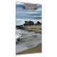 Sitting on the beach in the evening watching the approaching rain clouds move across the sky. The sea tide is coming in and the small local town of Tywyn shows in the distance. Gwynedd Wales UK.