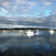 An evening view of Aberdyfi harbour after a day of rain the sun comes out.