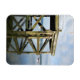A photographic design of Aberdyfi harbour, the jetty, boats and sea.