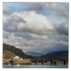 A view from Barmouth harbor of the mountains, estuary and railway bridge. Wales UK.