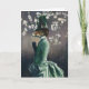 This card is illustrated with a Victorian vixen in a bustle dress set against a background of magnolias.