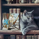 Viking Cat Blue Dragon Fantasy Ceramic Tile