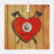Crossed Viking axes behind a red, heart shaped shield. The shield hangs on a bare wood plank wall. Add your own text on the shield.
