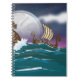 Viking Boats. Viking Invasion fleet crossing the stormy ocean cartoon.