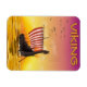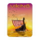 Viking longship sailing on the ocean or north sea during a beautiful sunset.