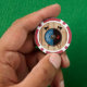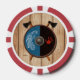 Rauð hönd ok örn. A Viking shield and crossed battle axes. The shield is black on the left side with a red right hand print. The other side of the shield is blue with a white eagle in Celtic-Norse style. Customize by adding the chip value or other text on the reverse side.