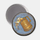 A festive magnet featuring brimming ale and tankard over beautifully weathered wooden Viking shield background.