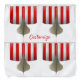Head on view of Viking longboat ship with red and white striped sail to customize on any color background, personalize by changing to your name